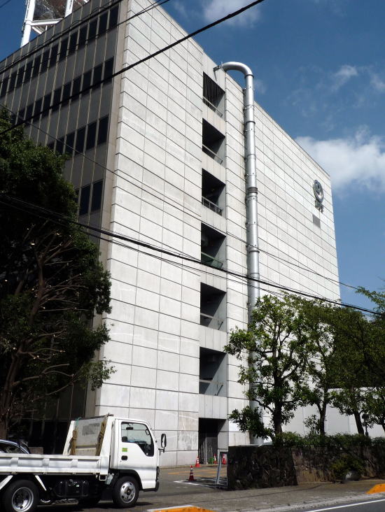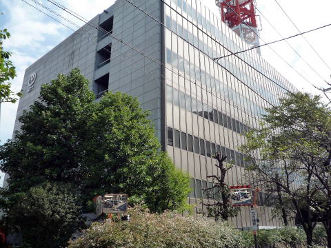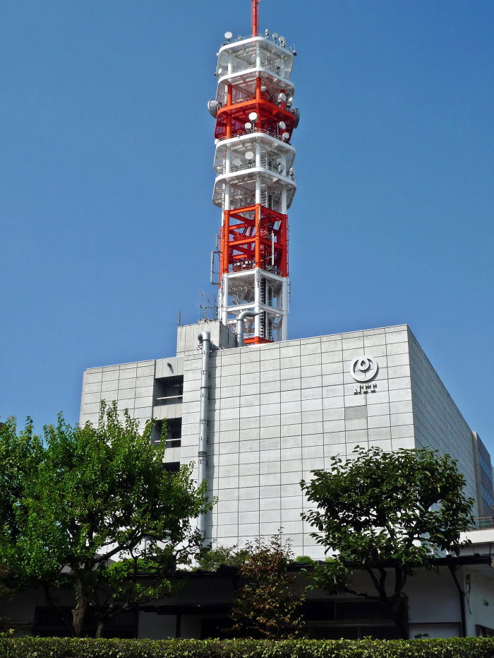六角形の大鉄塔が特徴的な電話局。