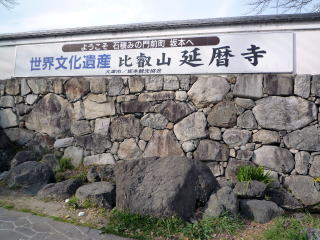 「ようこそ 石積みの門前町坂本へ」。