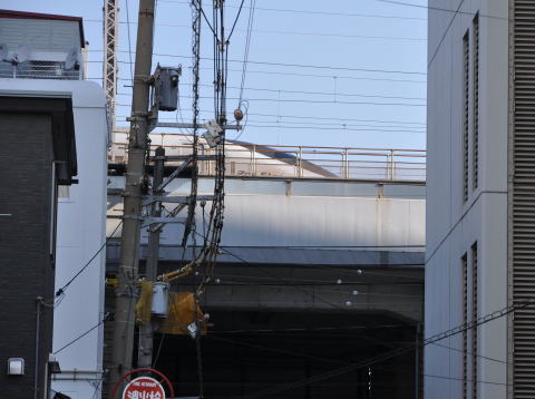 ビル前を山陽新幹線が走ります