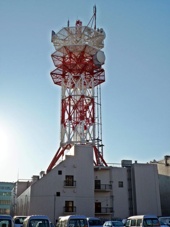 東側のビル(鉄塔有)には、NTTマークが掲げられていました。