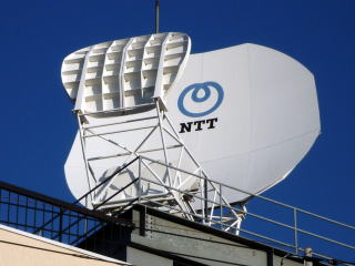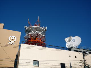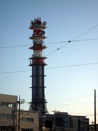 西側のビル(鉄塔無)には、NTTコムのマークが掲げられていました。
