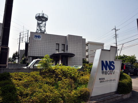 ビル前の㈱日本ネットワークサービス(甲府CATV局)。