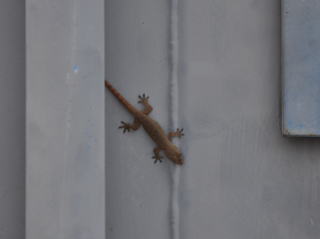 [右] 局に張付いていたヤモリ。