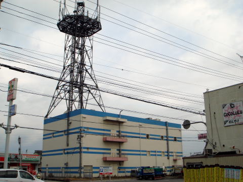 奇抜なカラーリングの電話局。とほほ。