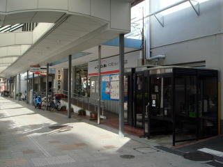商店街沿いにある電話局です。