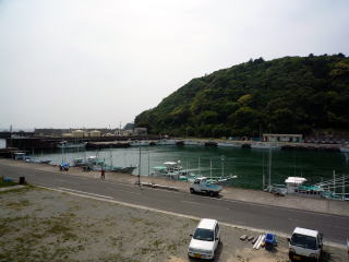 局近くのJR周参見駅と、すさみ港。