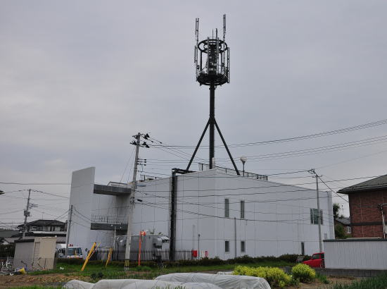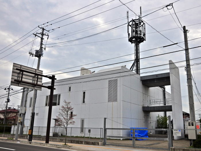 日本大震災で大きな被害を受けた宮城県多賀城市の電話局。