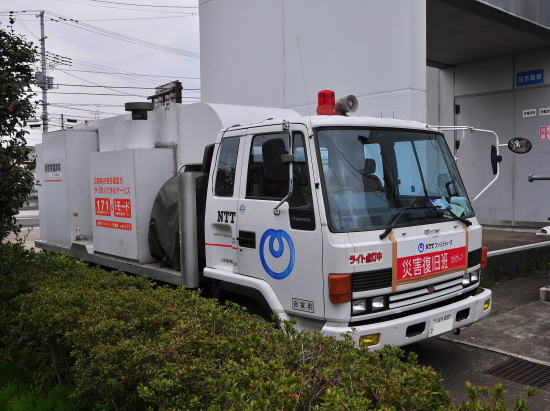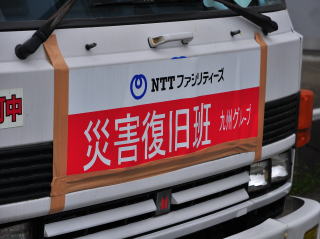 電源車には、NTT久留米支店の名が記されていました。