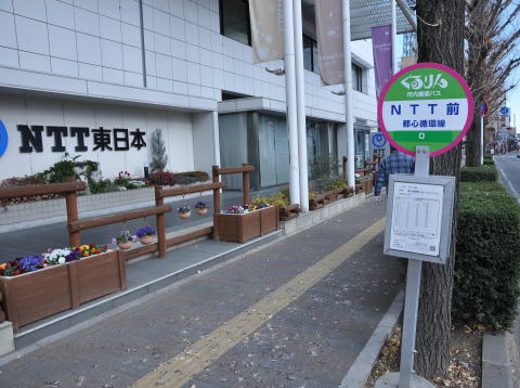 ビル前のバス停は、「NTT前」。