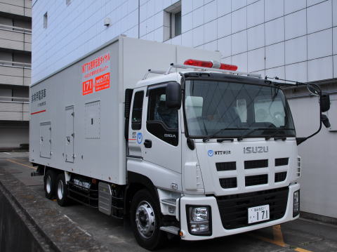 ビルに停まっていた非常用電源車。