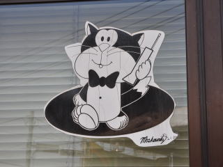 時々電話局で見かける、電話機を持った猫のシール。