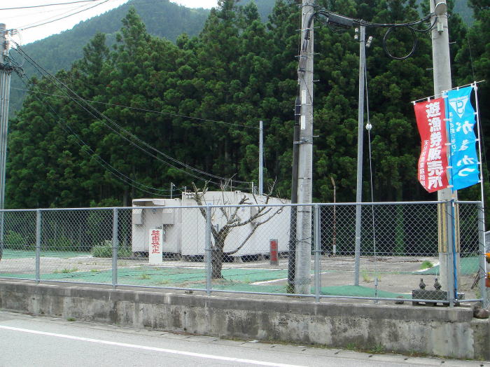 局前を流れる「天ノ川」。鮎の友釣りをしている人が多くいました。