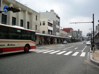 [右] 局前のバス停 「NTT寺町・NHK前」。