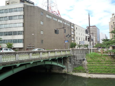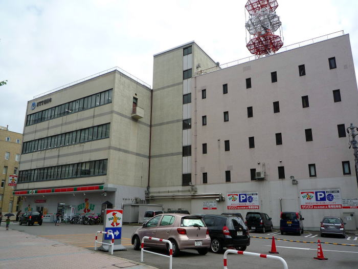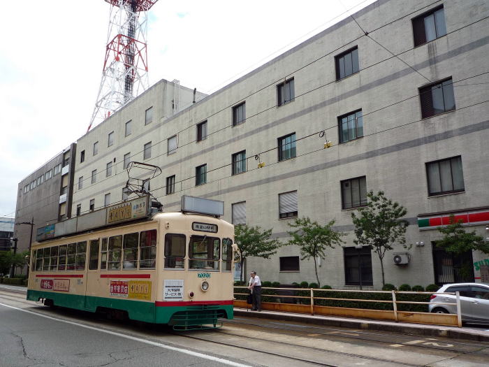 局前を走る、「富山地方鉄道 富山市内軌道線」。