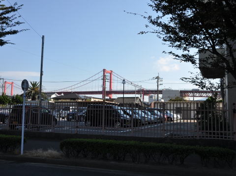 局前から見えた若戸大橋。