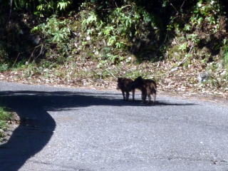 局近くで、野生の「うり坊」(イノシシの子供)がじゃれていました。