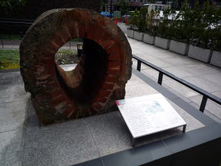 展示されていた、日本最古のガス管(左)、煉瓦造下水管(右)
